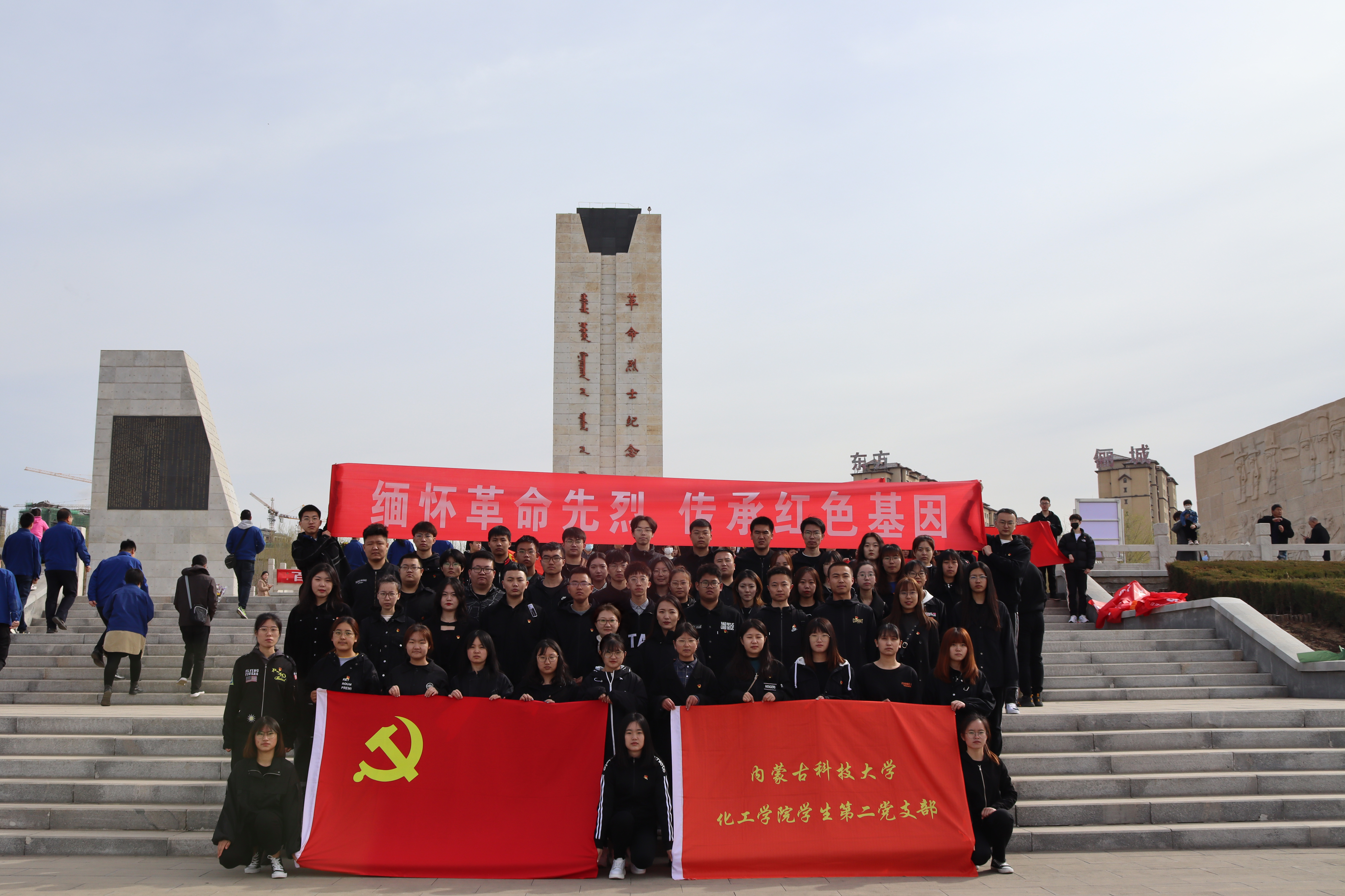 2021年4月3日早晨,化工学院学生第二党支部组织师生党员及入党积极分子前往包头市井坪公园开展“缅怀革命先烈 传承红色基因”清明节祭奠革命烈士活动,支部师生党员及入党积极分子共计59人参加了本次祭奠活动。