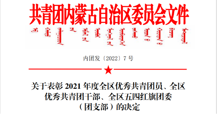 近日,共青团内蒙古自治区委员会下发了《关于表彰2021年度全区优秀共青团员、全区优秀共青团干部、全区五四红旗团委 (团支部)的决定》,91吃瓜