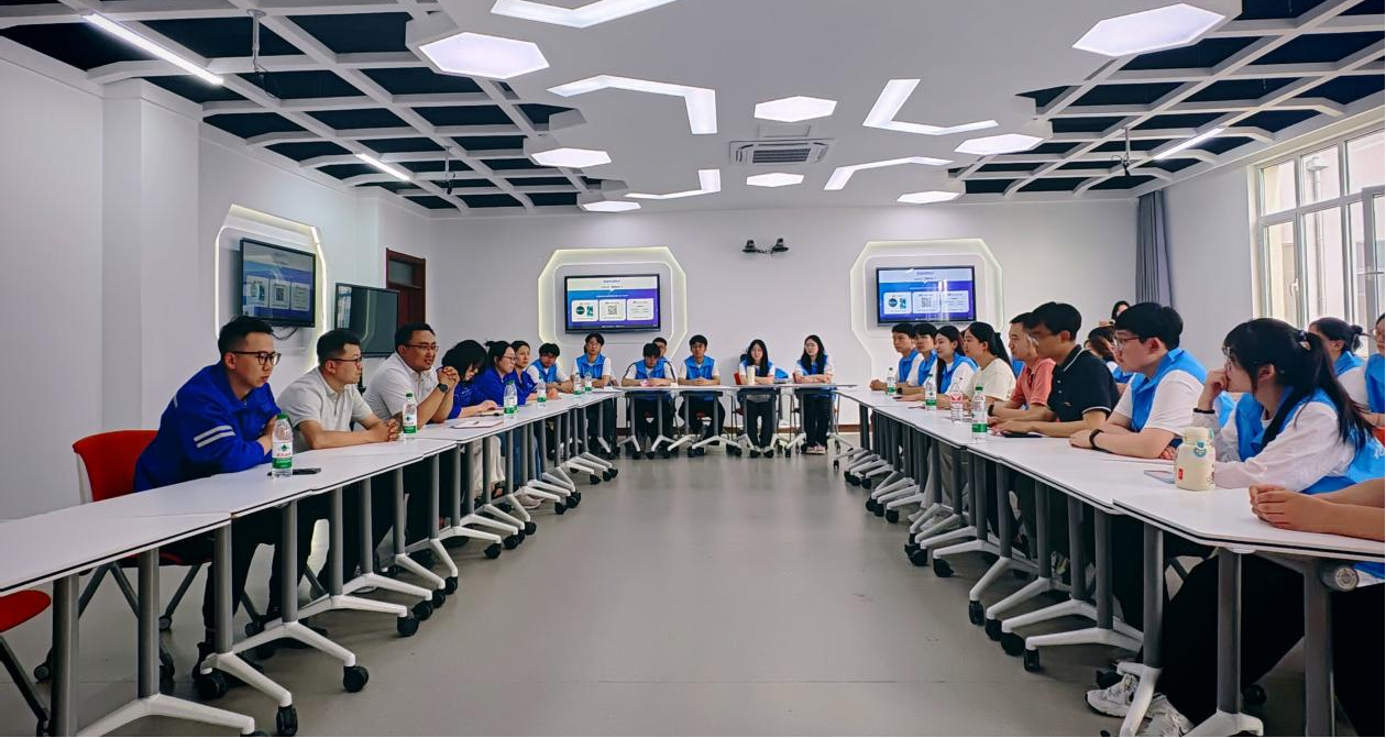 师生与企业代表借此契机开展了交流座谈。会上,双方围绕党团建设、学生职业规划与企业人才需求等话题展开深入讨论,共话合作、共谋发展。授权80余项专利的优秀校友苏保全在分享中勉励青年学子:“青年人要不惧默默无闻,以坚韧意志勇敢实践、踏实做事,终将迎来厚积薄发、崭露头角的时刻。”