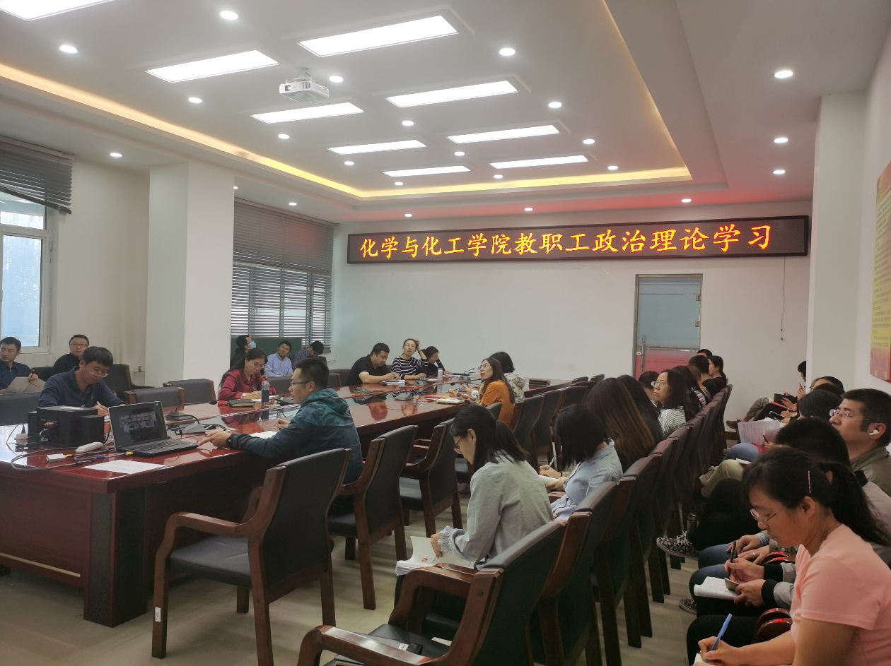 在逸夫楼E202会议室开展教职工政治理论学习。全体教职工参加学习。本次学习内容为:《习近平谈治国理政(第三卷)》。