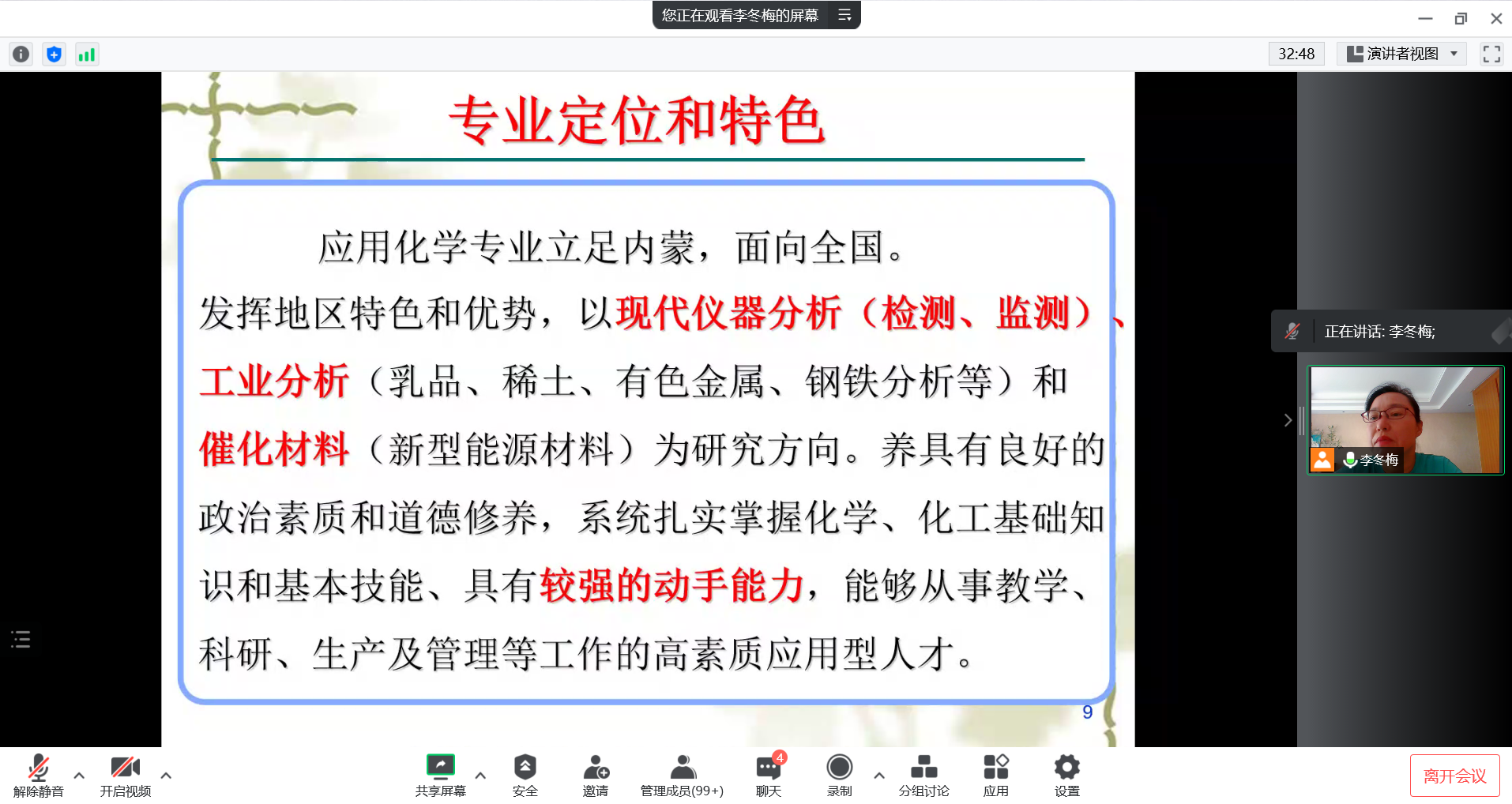 9月6日下午,化学工程与工艺系负责人吴刚强教授、应用化学系负责人李冬梅教授和能源化学工程系负责人赛华征教授,围绕专业建设、师资力量、专业培养方案、课程设置和毕业要求等方面进行专业教育,帮助新生深化专业认知、掌握专业学习方法、规划专业学习目标。