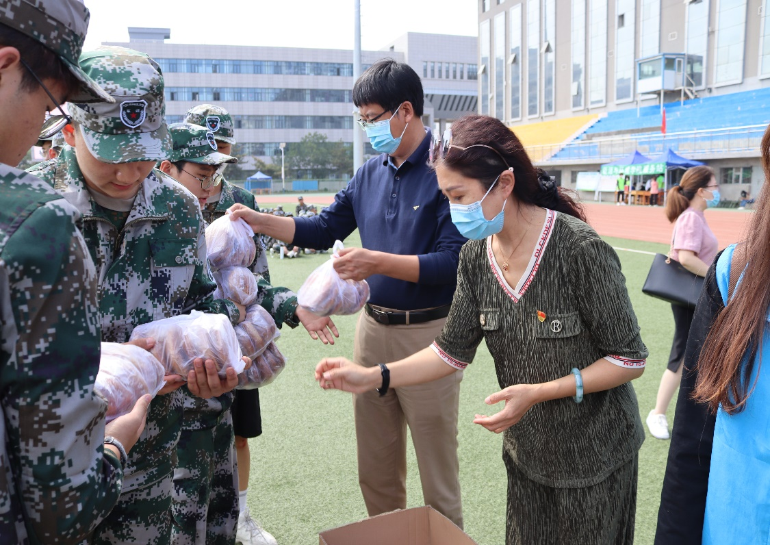 院长李松波、副书记副院长王涛、学工办主任冀虹赴军训操场进行慰问,为同学们送上节日祝福,让同学们感受到了学院的关怀。