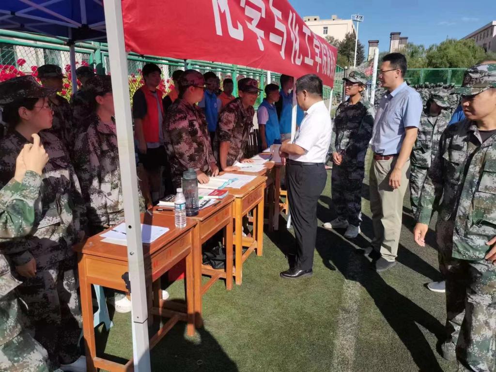 服务站时,与服务站内的参训新生亲切交流,详细了解他们的身体情况及需求,他表示,学校、学院将竭尽全力为大家提供一个安全舒适的军训环境,同学们在训练中有什么需求或困难,都可以及时向辅导员反映,学院会尽全力解决。