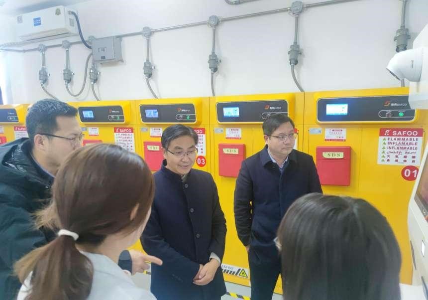 实地调研检查危化药品库,院党委书记罗强、院长李松波及危化药品库负责人陪同检查。