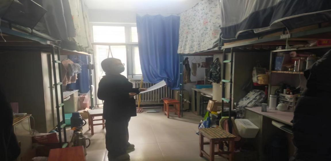 检查中,冀书记和辅导员们深入每个学生宿舍,认真查看宿舍内的用电安全情况、物品摆放状态以及卫生状况。老师们与同学亲切交谈,着重强调了宿舍安全的重大意义,提醒同学们务必严格遵守学校的宿舍管理规定,严禁使用违规电器,不得乱拉乱接电线,以确保用电安全,并叮嘱同学们要养成良好的生活习惯,保持宿舍整洁卫生,共同营造舒适的生活环境。