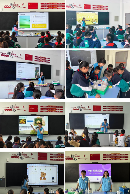 参与学生精心设计课程,让小学生在动手实践中感受奇妙的化学世界。“瓶中雪”实验使孩子们观察到沉淀反应的神奇现象;“净水器”实验让他们学习了吸附、过滤原理;“鸡蛋壳写字”巧妙融合传统文化与化学知识;“叶脉书签”制作揭示了植物叶片的结构奥秘;“铁树开花”生动展示了金属置换反应。此外,“可乐变雪碧”、“化学红绿灯”和“鲁米诺试验”等实验,分别让孩子们了解了酸碱指示剂、氧化还原反应以及化学在刑侦中的应用。这些实验兼具安全性与趣味性,有效引导孩子们思考,让他们感受到化学与生活的紧密联系。
