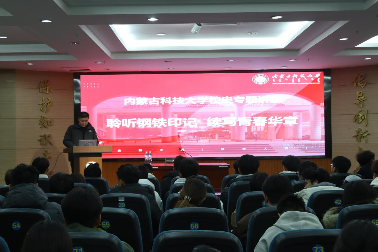 在图书馆B206报告厅成功举办“聆听钢铁印记,续写青春华章”校史专题讲座。活动邀请学院原党总支书记甄金智担任主讲嘉宾,学院党委副书记副院长、辅导员及2025级学生代表共同参加。