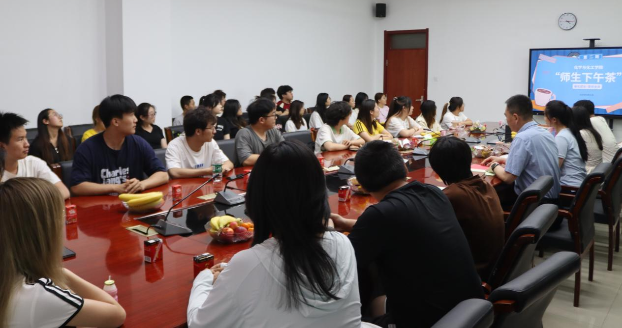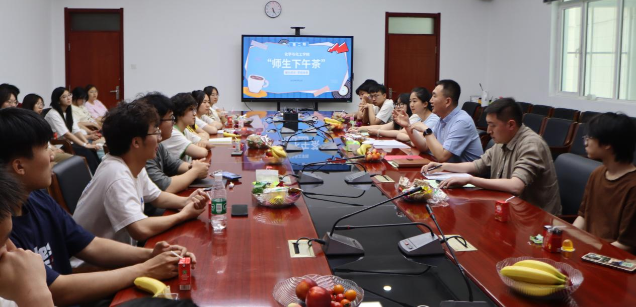 第二期“师生下午茶”活动在逸夫楼E202温馨举行。本次活动以“催化成长·茶叙未来”为主题,院党委书记杨包生、辅导员亢智鹏、班主任殷赫男、副班主任贾双宁及应用化学23级2班全体学生共同参与。