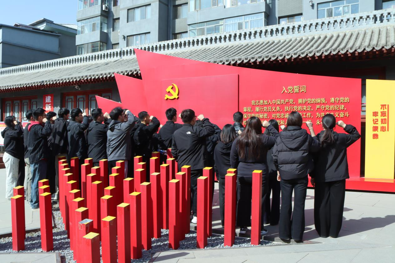走出纪念馆,全体党员面向党旗庄严宣誓,用铿锵有力的声音重温了入党誓词。