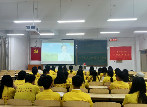 学生第二党支部在逸夫楼G203开展《北疆党课进行时》之“三千孤儿入内蒙”红色党课,全体学生党员参加学习。