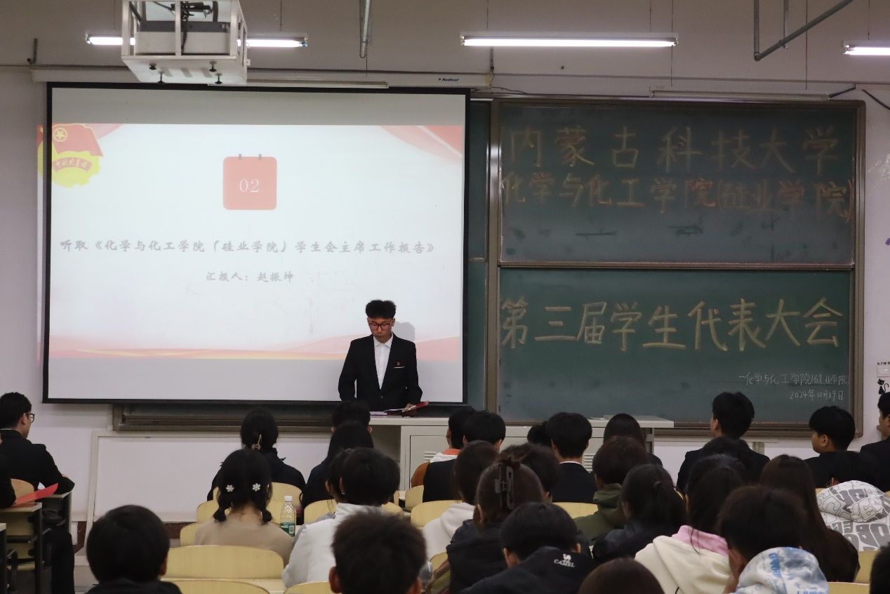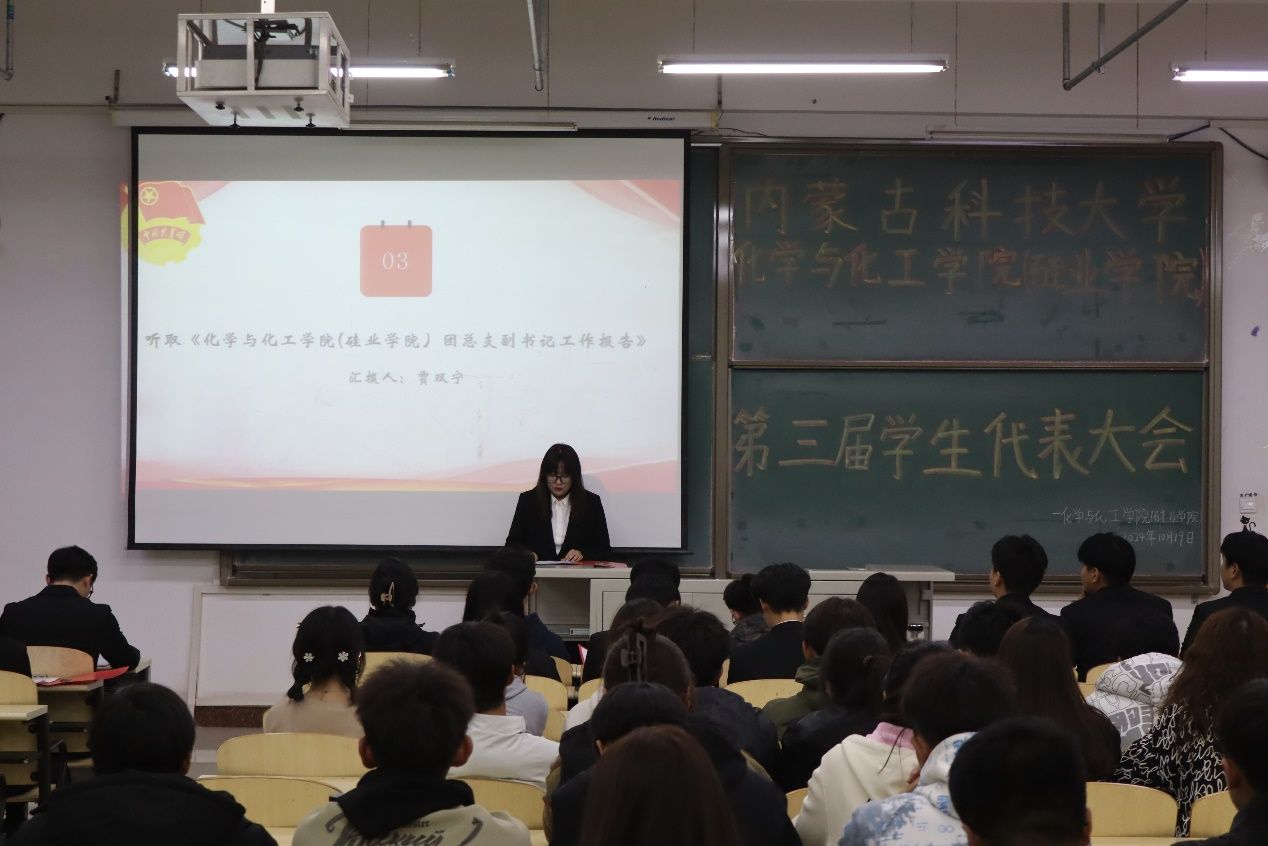 (硅业学院)第三届学生代表大会在逸夫楼G202顺利召开。学院团总支书记及辅导员、学生代表出席会议。