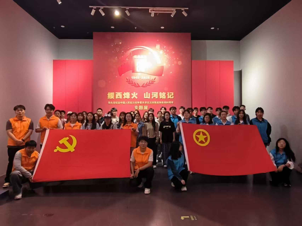 活动中,学院团委与学生第一党支部共同前往包头市博物馆,参观“绥西烽火 山河铭记”——包头市纪念中国人民抗日战争暨世界反法西斯战争胜利80周年专题展。通过实地参观和现场学习,同学们深入了解了抗战历史,并分享了心得体会。同时,各团支部分别组织开展专题讲座、抗战故事分享等形式的学习活动,进一步引导团员青年缅怀革命先烈,传承红色基因。
