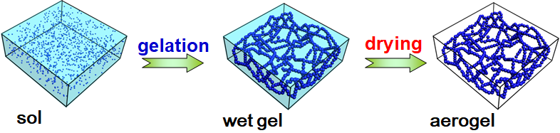 气凝胶是湿凝胶经特殊的干燥处理使得凝胶骨架间的液相被气相所取代,而凝胶骨架完好地保留下来所得到的一种纳米超多孔材料(如图1所示)。独特的微观结构赋予气凝胶材料诸多优异的特性,使其在隔热、储能、催化、分离、电池、航空航天等诸多领域具有良好的应用前景,因而被誉为“能够改变世界的神奇材料”。