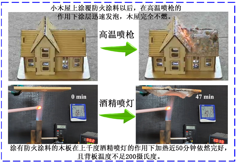 图3.梯度发泡型透明防火涂层防火性能展示。