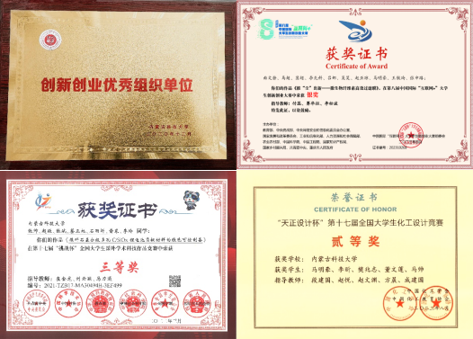 能源化学工程专业教师高度重视教学研究及科学研究工作,共承担国家自然基金5项,自治区科技计划项目、内蒙古自然基金等省部级科技项目30余项,受企业委托开展横向课题10余项,科研经费总额超过700万元。尤其是,本专业教师在指导大学生课外科技创新方面经验丰富,近3年指导学生在诸如“互联网+”、“挑战杯”、“全国大学生化工设计竞赛”等各类大学生创新创业竞赛活动中获国家级奖项14项,自治区级奖项30余项,且有3名教师荣获内蒙古自治区“互联网+”大学生创新创业优秀指导教师称号,并被学校评为创新创业优秀组织单位,本专业学生获奖数量和级别在学院中名列前谋。